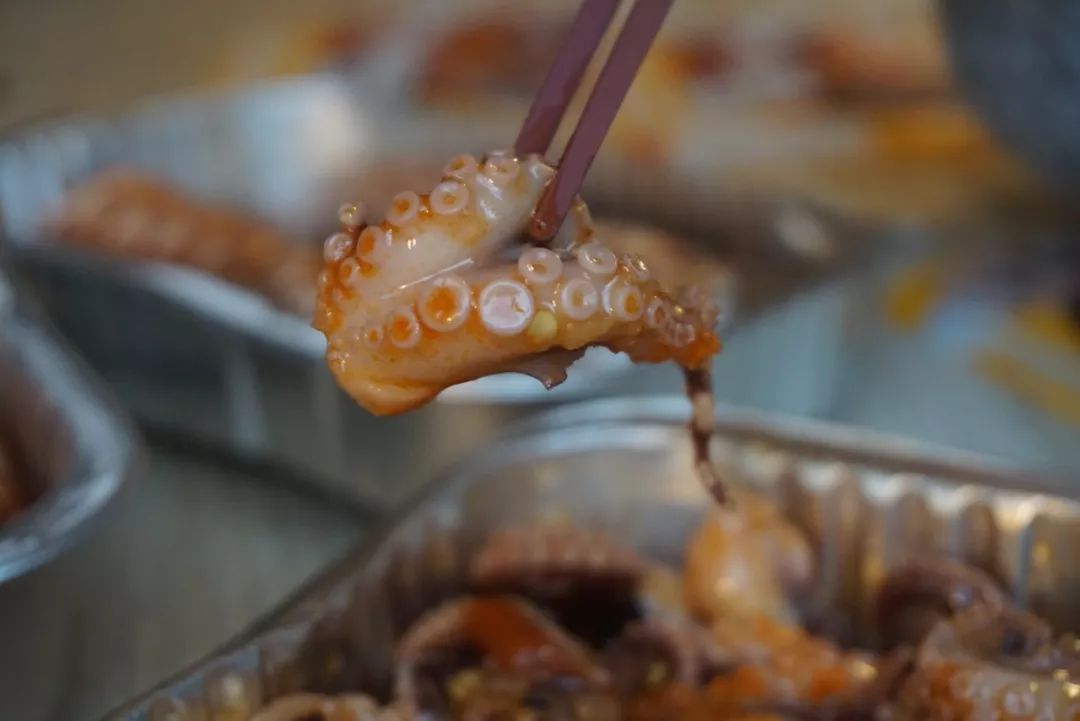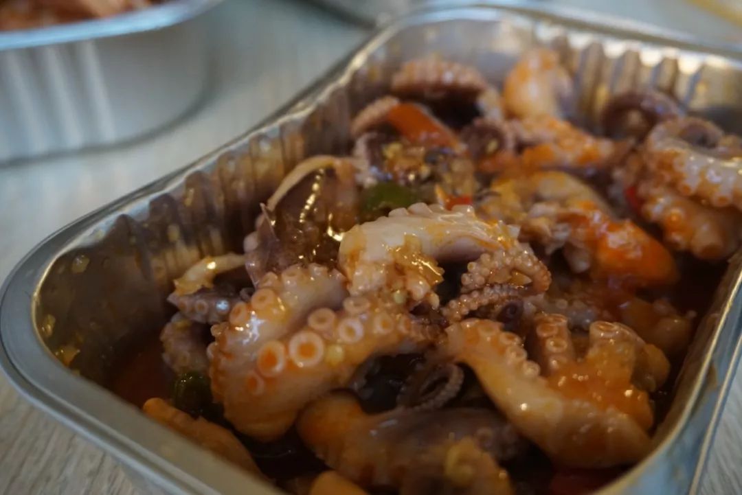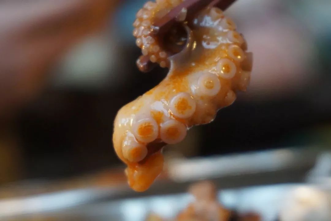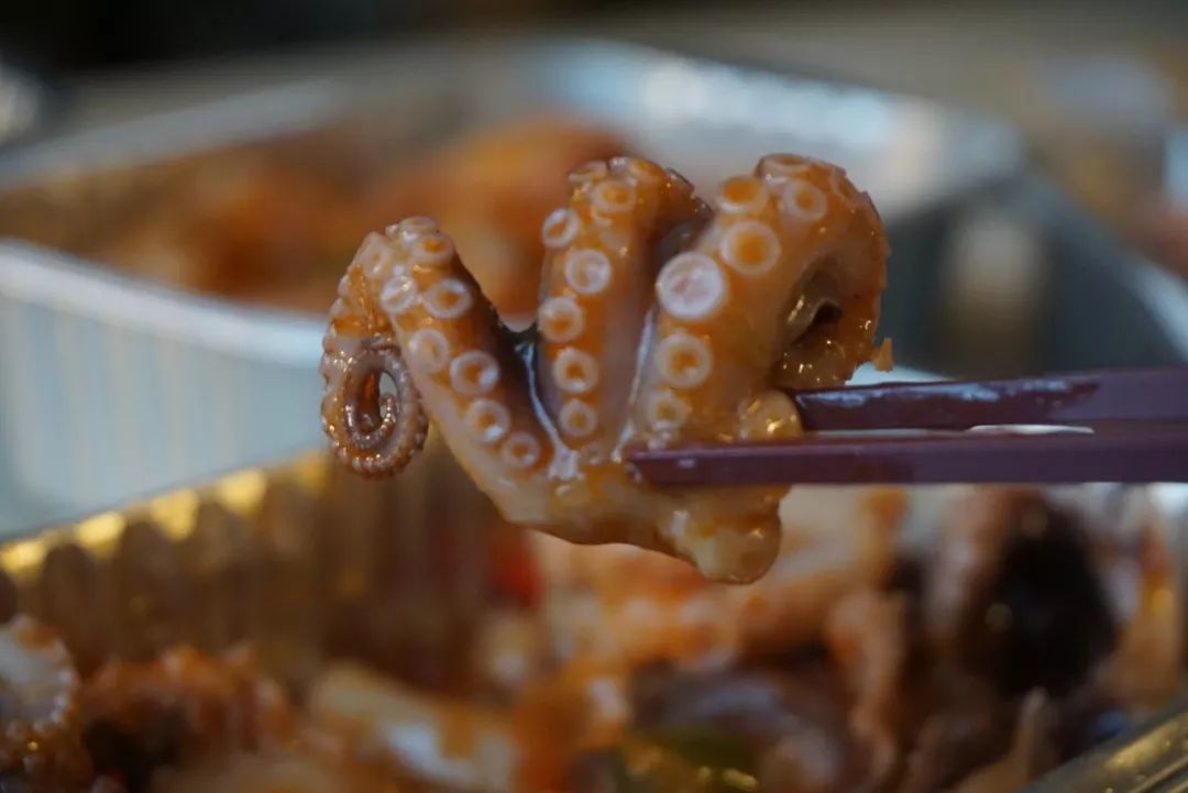 裹著湯汁的魷魚咬起來嘎嘣脆,一口一個的停不下來。